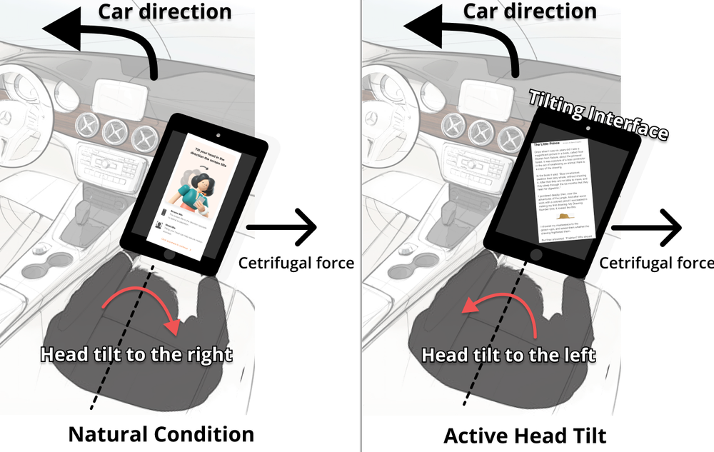 An interface that assists users to tilt their head in response to the lateral acceleration of the car.