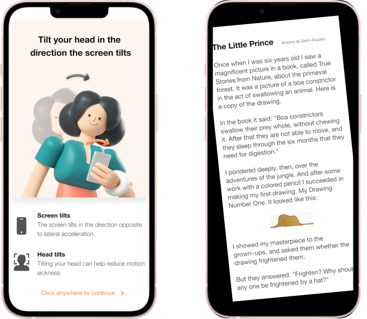 During the experiment, participants read a passage from the tilting QP interface for 10 minutes and were interviewed to share their experience with the prototype for 5 minutes.