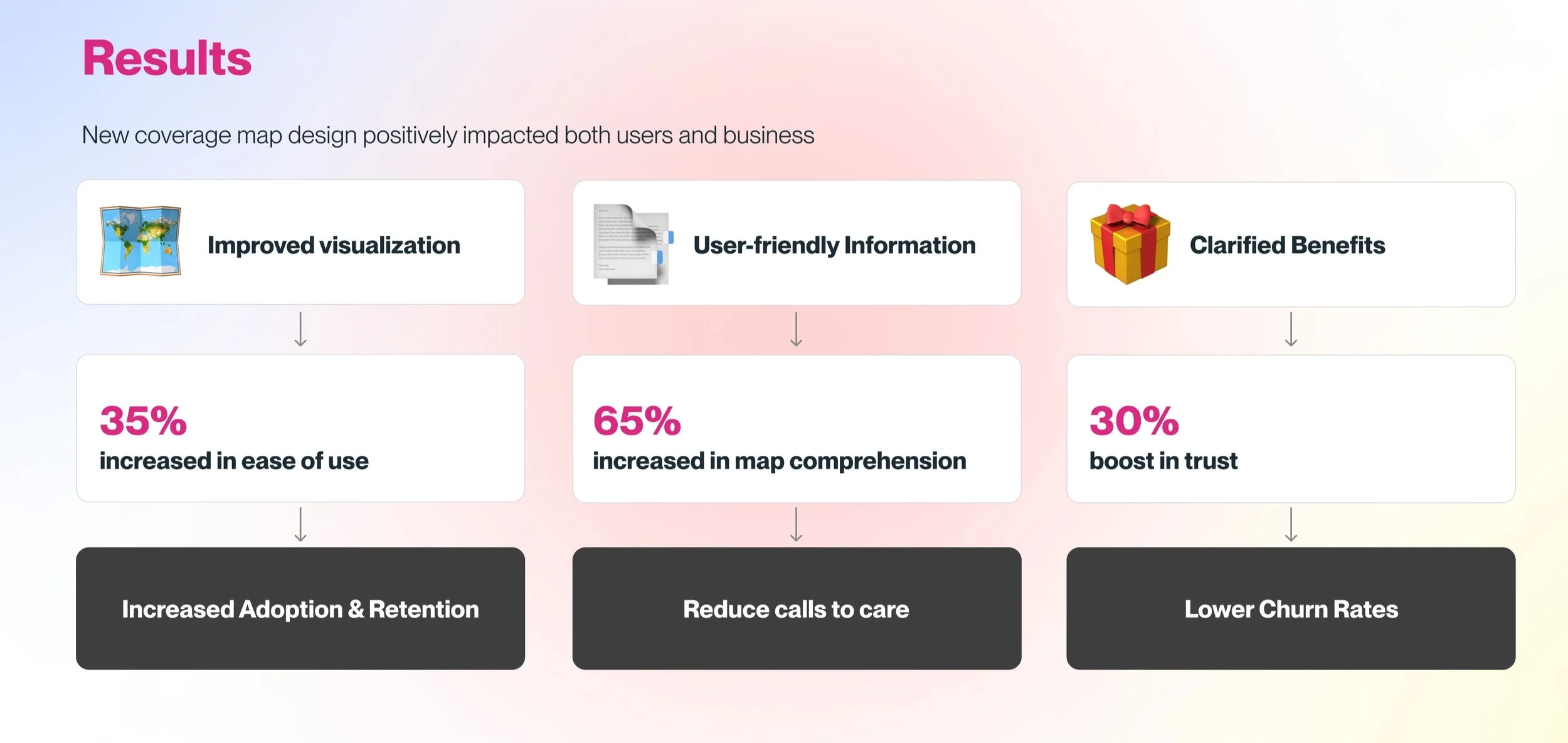 Enhanced Map Usability: Map usability improved by 35% by expanding the coverage map to full screen. Redundant marketing copy was reduced and replaced with dynamic map legends, offering a more streamlined and focused experience.