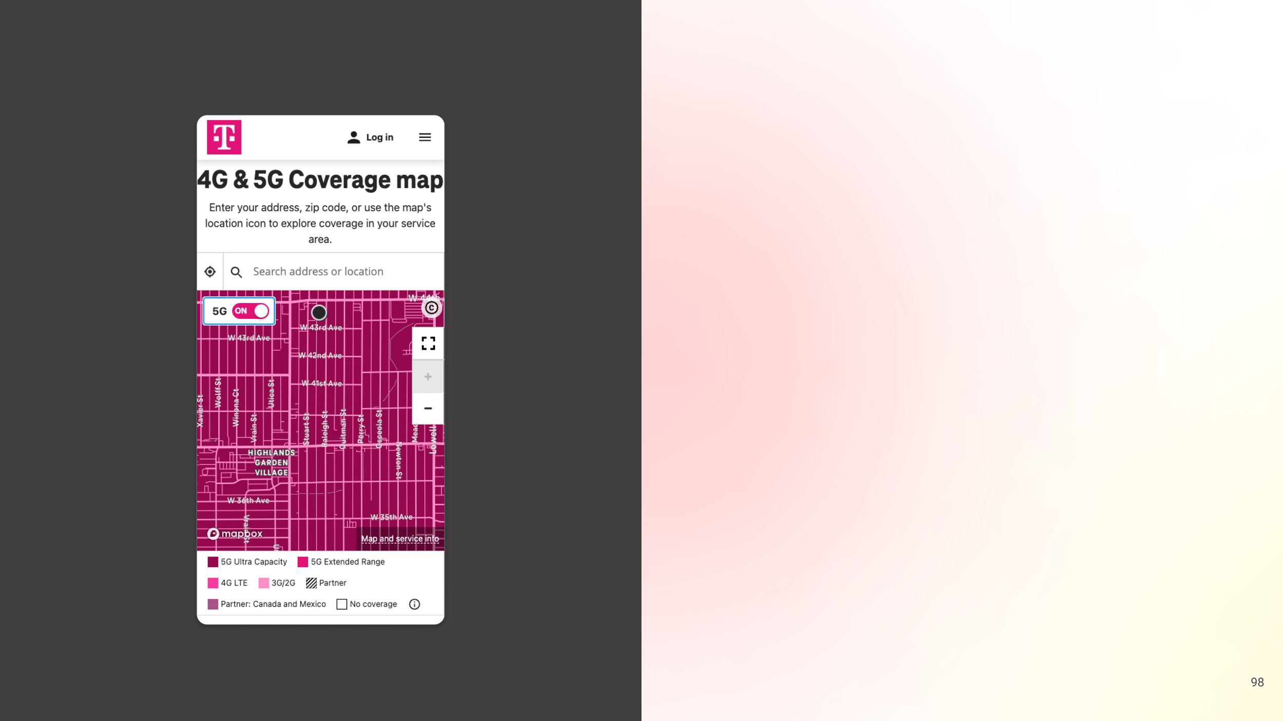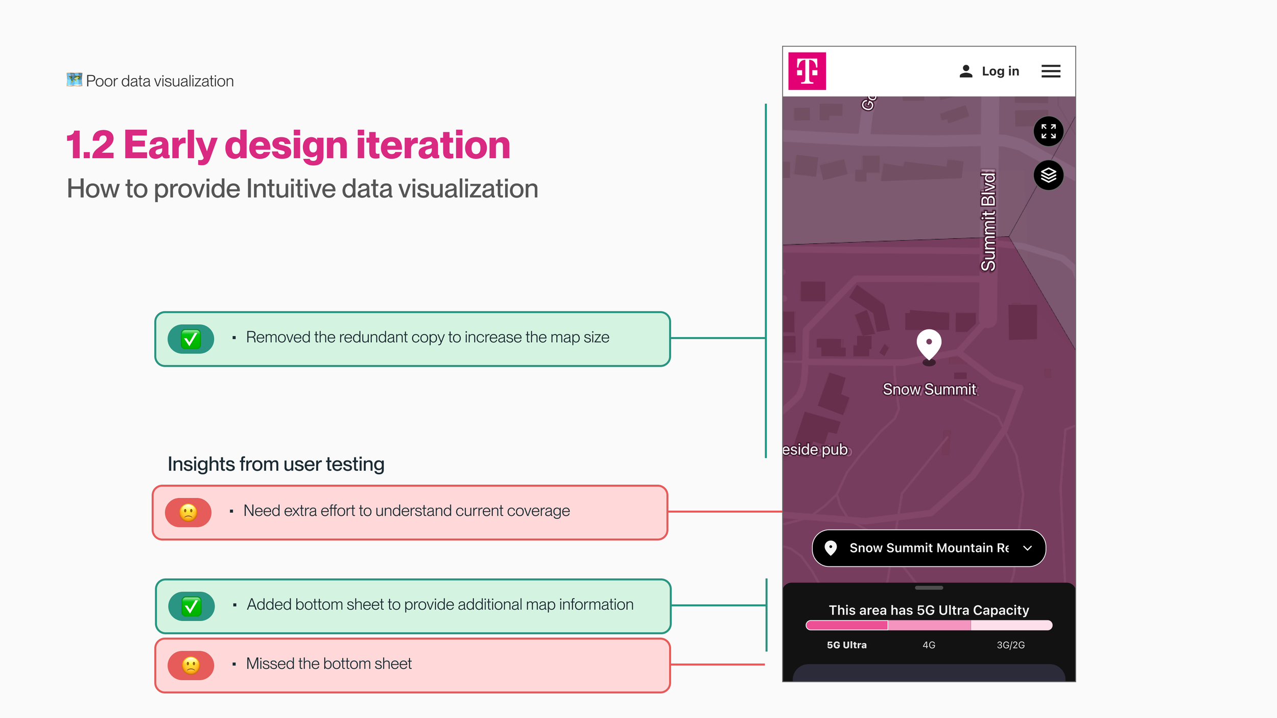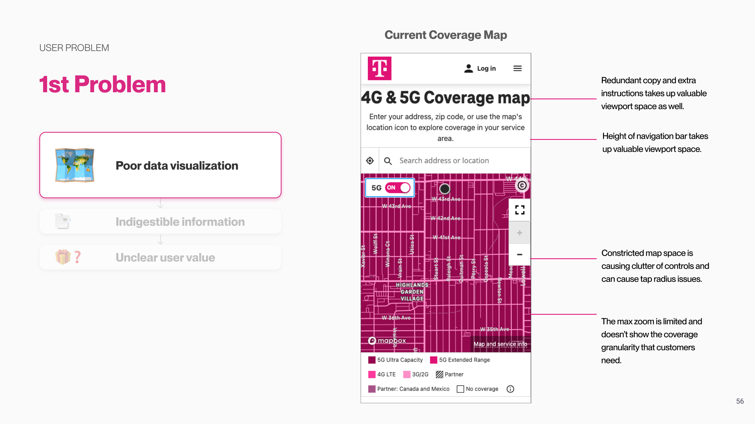 Limited Map Usability: The coverage map was partially obscured by redundant marketing copy, with only half of the screen available for users to explore the map.