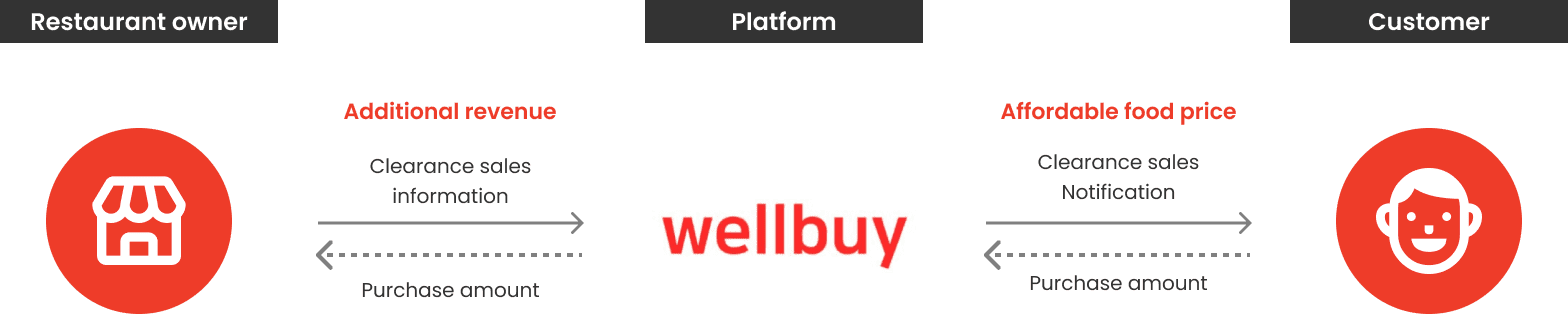 We designed a platform to minimize surplus food that helps reduce food waste through clearance sales. wellbuy connects customers and small restaurants. wellbuy not only helps restaurant owners make an additional income by selling surplus foods but also helps customers save food expenses by buying clearance sale food. Ultimately, wellbuy help reduces food waste in the world.