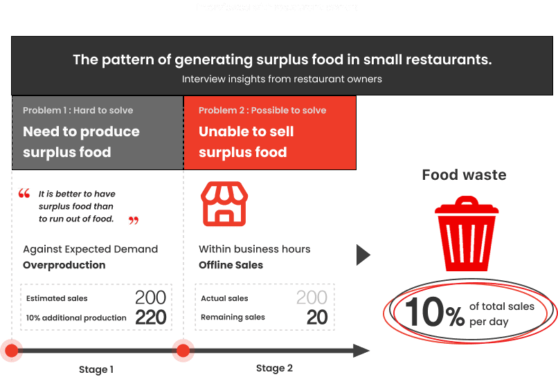 We analyzed the pattern of generating surplus food in small restaurants based on our interview insights. We found two problems when restaurant owners produce food.