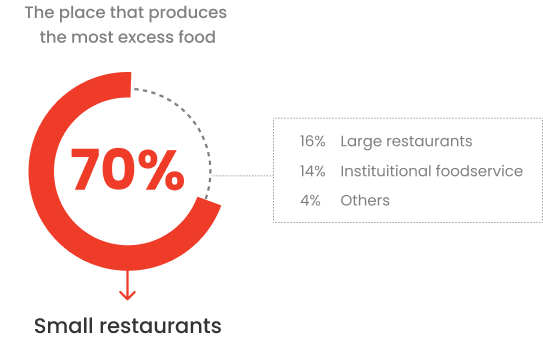 I researched reports to understand where surplus food mainly comes from. Based on reports, I found that 70% of surplus food is produced from small restaurants.
