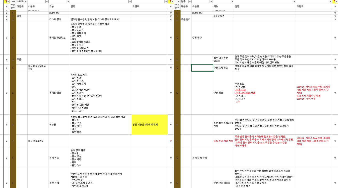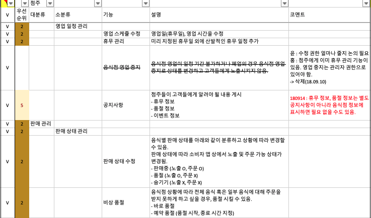 We defined the necessary functions from the customer's point of view and the restaurant owner's point of view in ranks from 1 to 5. We have organized the functions according to major categories, sub-categories, descriptions, and priorities.
