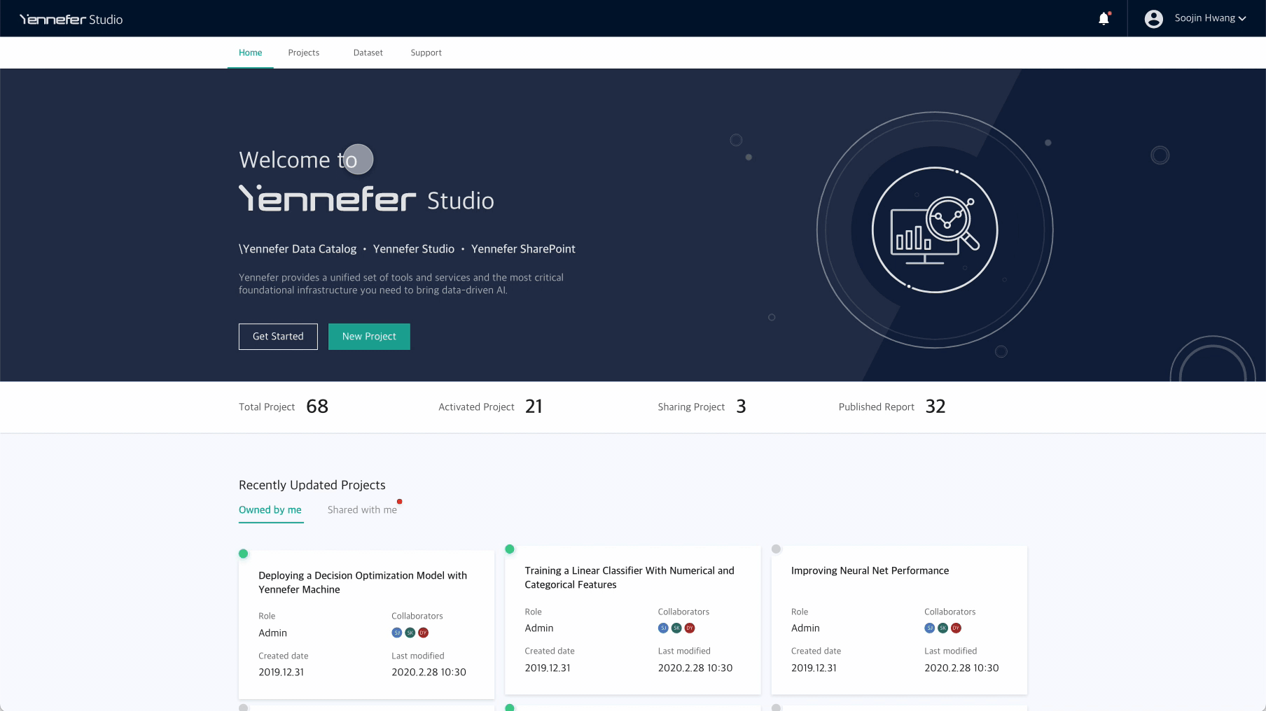 Yennefer Suite is 5 in 1 enterprise AI platform that serves AI search to get valuable insights from massive data and manage an organization's AI projects. I was the only designer in this startup company and led the entire design thinking process from research to launch. Currently, Yennefer is being used by 9 enterprise organizations including Samsung Display, KT Telecom, Hyundai, Seoul National University, and the State University of New York.